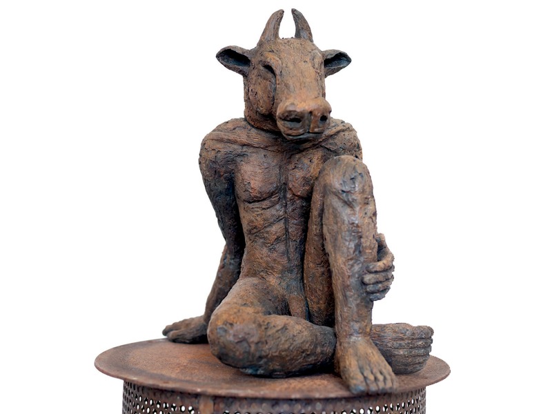 British artist Sophie Ryder is renowned for her large-scale open-air sculptures of mystical hybrid creatures. Among her cast of characters, the Lady Hare features often, alone or paired with her male counterpart, the Minotaur. Best known for her sculptures made of twisted wire, the artist was encouraged to work in bronze by her friend and mentor Elisabeth Frink and has also employed plaster, sheet metal and marble.